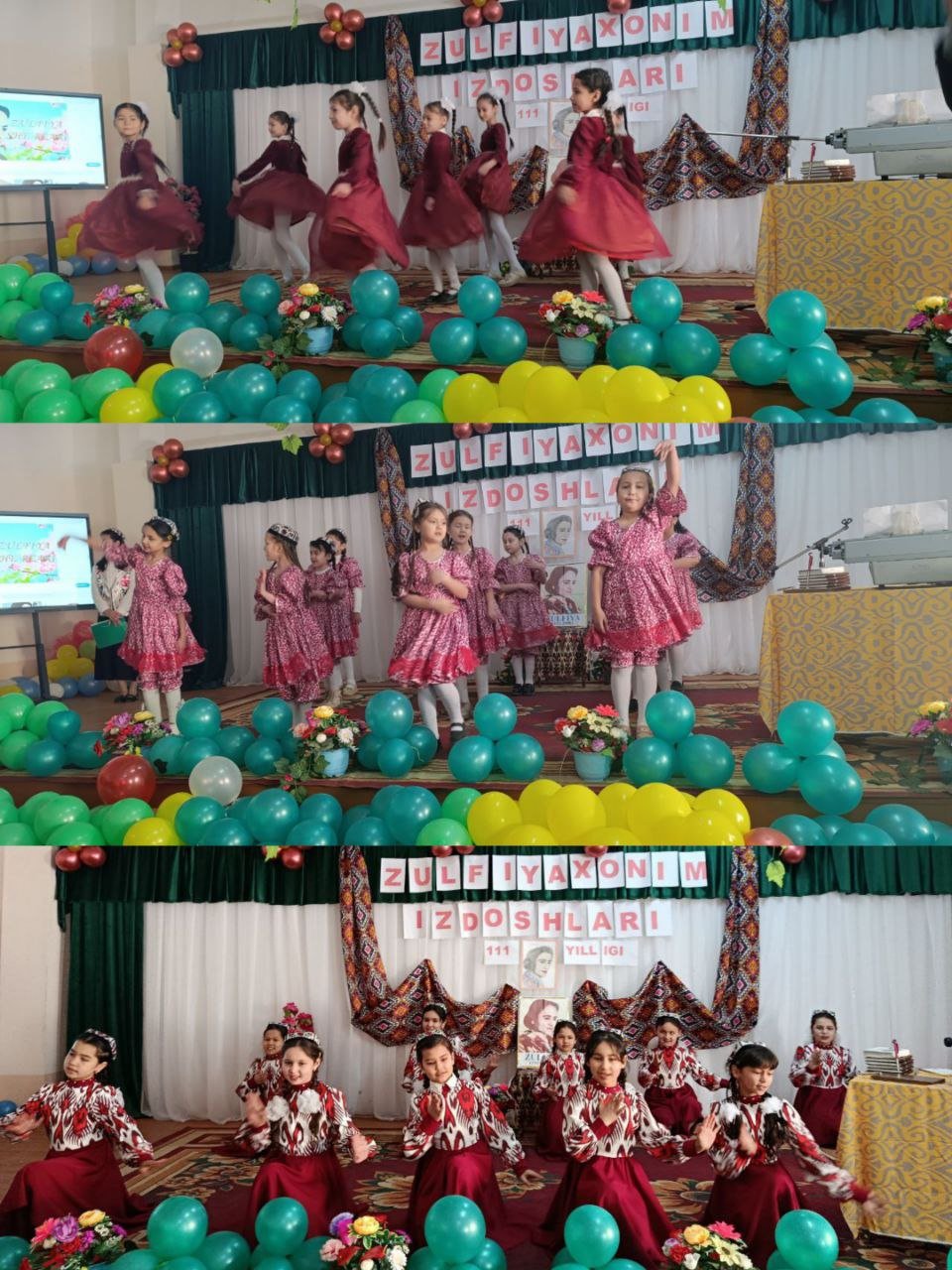 Xorazm viloyati Yangiariq tumani 5-son umumiy oʻrta taʼlim maktabida Zulfiyaxonim Isroilova tavalludining 111 yilligiga bag'ishlab Ona tili va adabiyot fani o'qituvchisi S.Eshmetova tomonidan"Zulfiyaxonim izdoshlari..." nomli adabiy-badiiy kecha uyushtirildi